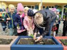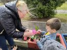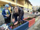 Dosadzanie cebulek i kwiatów w gizony w ogrodzie przedszkolnym- ŻABKI