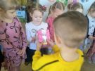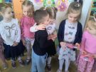 Wręczanie dziewczynkom upominków od chłopców- gr. Motylki
