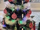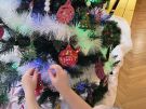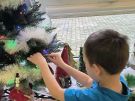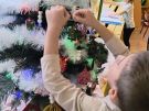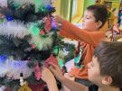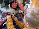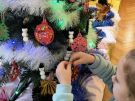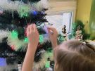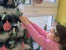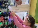 Żabki ubierają choinkę przed wizytą Mikołaja w bombki wykonane przez siebie