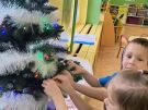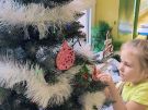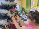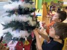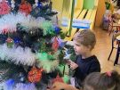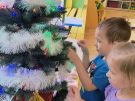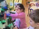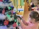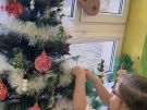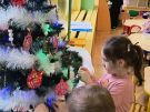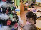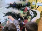 » Żabki ubierają choinkę przed wizytą Mikołaja w bombki wykonane przez siebie